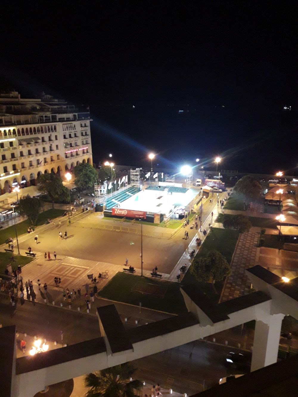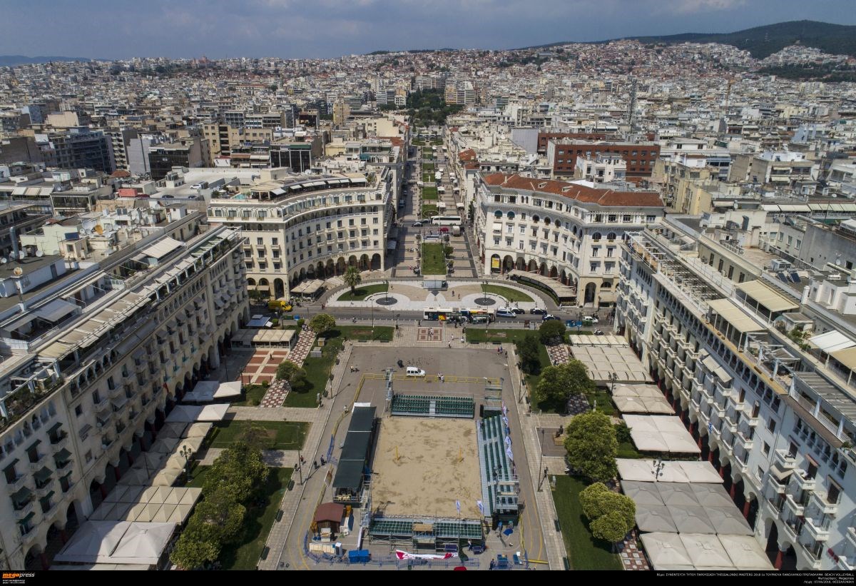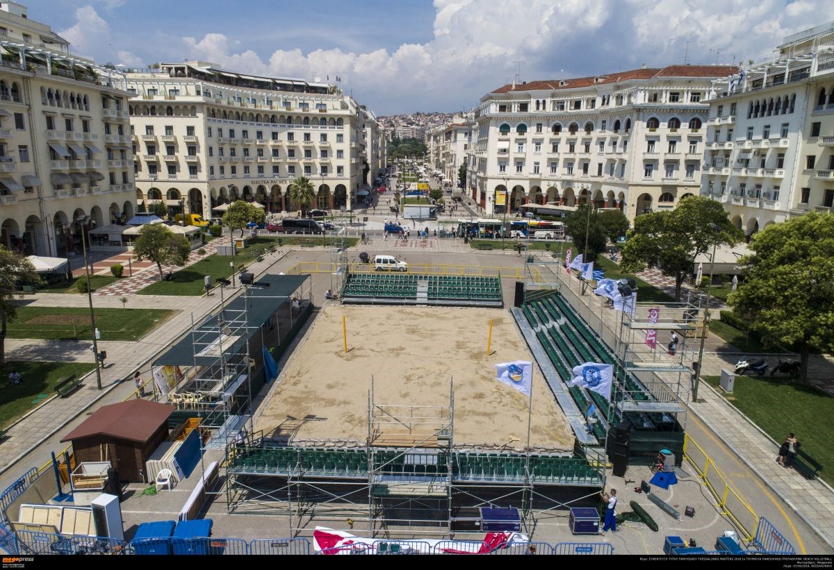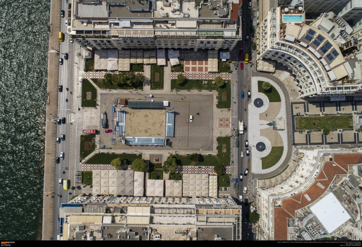 Εντυπωσιακές αεροφωτογραφίες από την ετοιμασία του γηπέδου στην εμβληματική πλατεία Αριστοτέλους. Όλα είναι έτοιμα για το πρώτο σερβίς της Παρασκευής.
