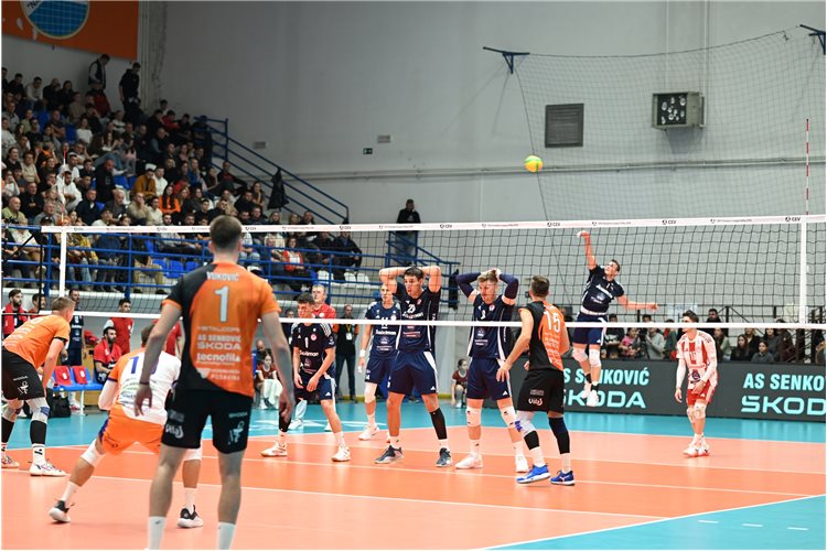 Στο πρώτο σετ ο Ολυμπιακός πέρασε μπροστά με 8-9 με επίθεση του Ατανασίγιεβιτς, για να ακολουθήσει ο άσσος του Λινάρδου για το +3 των ερυθρολεύκων (9-12). Η Νάπρεντακ αντέδρασε και πέρασε μπροστά με 15-14, με τις δύο ομάδες να πηγαίνουν πόντο πόντο μέχρι το 20-20. Μία επίθεση του Φρομ και δύο μπλοκ από Πέριν, Νεντέλκοβιτς έκαναν το 20-23, με τον Σέρβο κεντρικό να δίνει τέσσερα σετ μπολ στον Ολυμπιακό (20-24). Οι Βόσνιοι έσβησαν το ένα αλλά στη συνέχεια έχασαν το σερβίς για το 21-25.