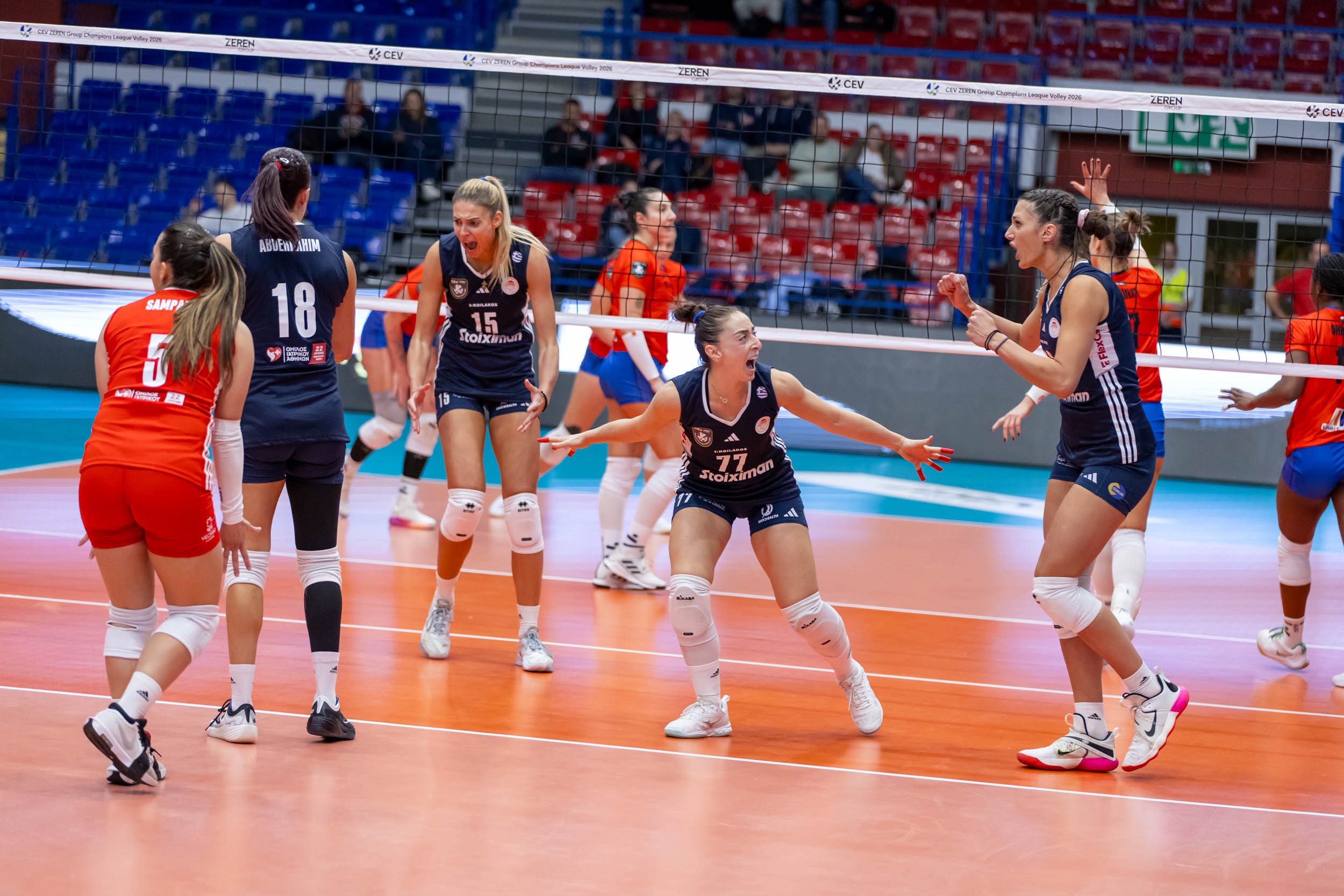Η διαγώνια των ερυθρολεύκων Μίλιτσα Κούμπουρα τόνισε: «Είμαι πολύ περήφανη για την ομάδα μου. To σημερινό ήταν ένα παιχνίδι μεγάλης σημασίας για εμάς και παίξαμε συγκεντρωμένα και δυνατά από την αρχή. Εύχομαι να συνεχίσουμε να βελτιωνόμαστε κάθε μέρα, ώστε να μπορούμε να σταθούμε απέναντι στις κορυφαίες ομάδες της φάσης των ομίλων του CEV Champions League».