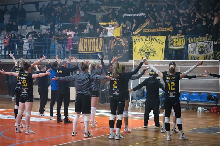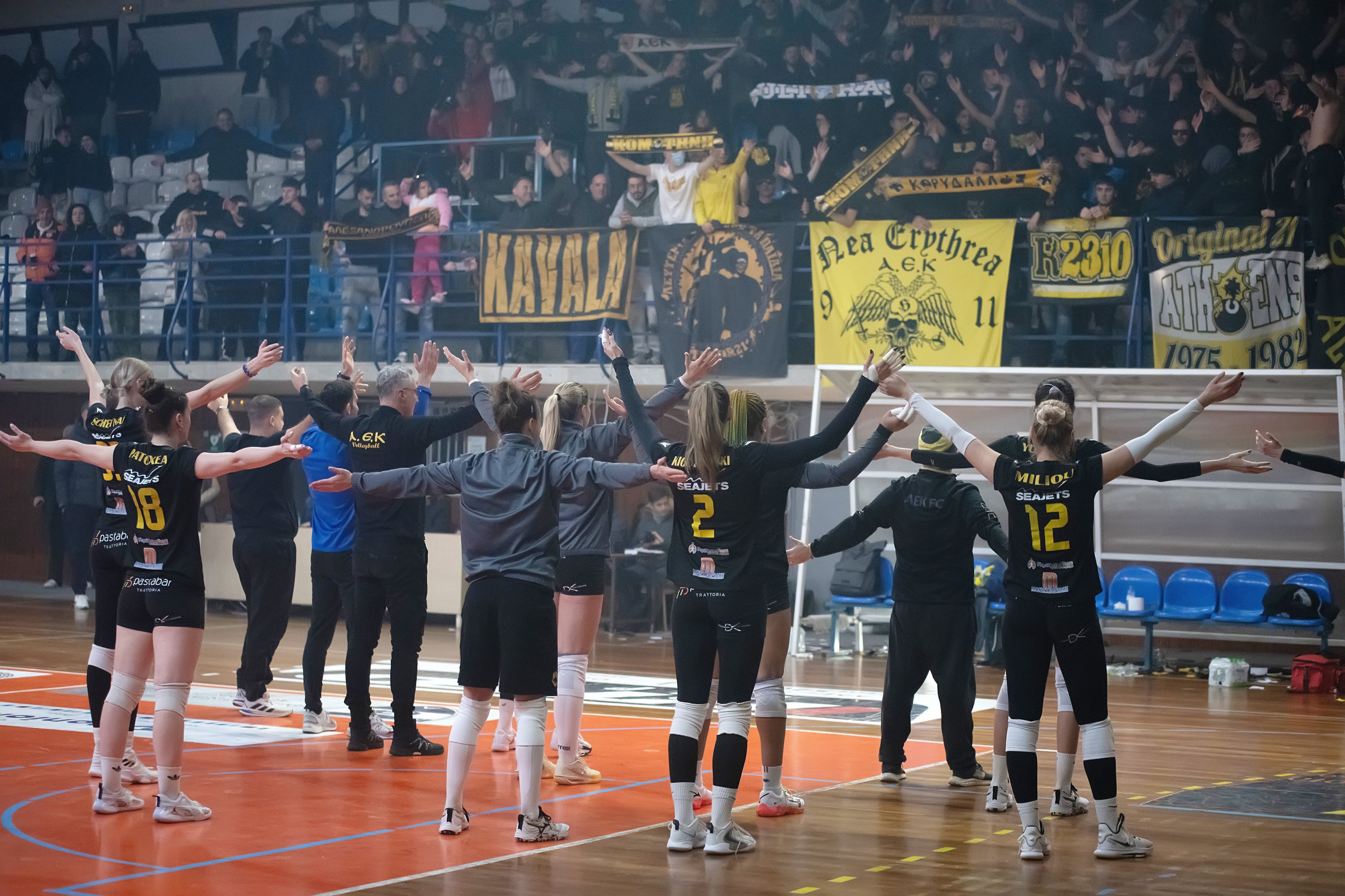 Με τον κόσμο της να δίνει δυναμικό παρόν στο κλειστό γυμναστήριο «Μιχάλης Παρασκευόπουλος» η ΑΕΚ επιβεβαίωσε το τίτλο του φαβορί απέναντι στον Φοίνικα Αλεξανδρούπολης, τον οποίο νίκησε με 3-0 σετ για να προκριθεί στα προημιτελικά του κυπέλλου γυναικών.
