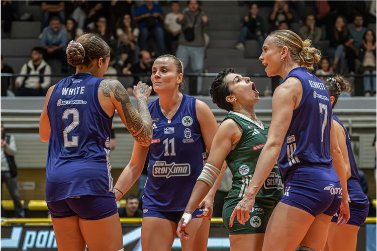 Με την Μικάγια Γουάιτ να σταματάει στους 31 πόντους, ο Παναθηναϊκός έφυγε νικητής από το Ολυμπιακό Χωριό, επικρατώντας της ΑΕΚ με 3-2 σετ, σε αγώνα που διήρκησε δύο και πλέον ώρες.