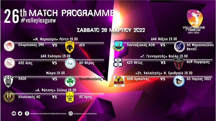 Οι Live streaming μεταδόσεις της 26ης αγωνιστικής της Volley League γυναικών.