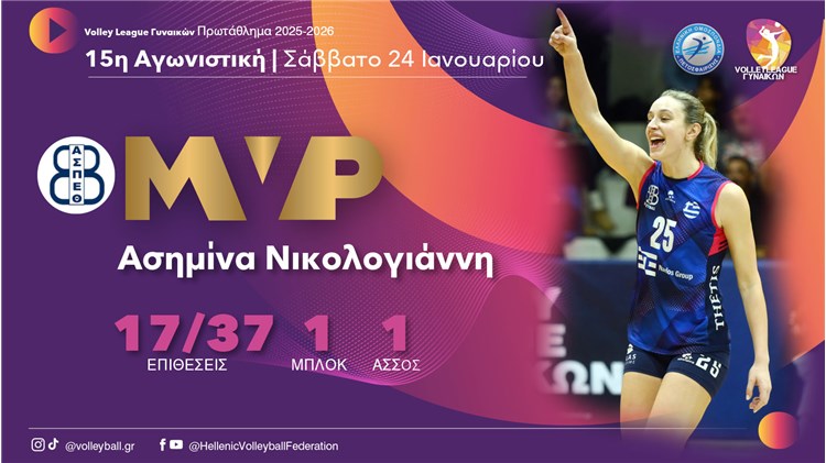 H ΕΟΠΕ θα βραβεύσει την Κυριακή 5 Νοεμβρίου την MVP της 2ης αγωνιστικής της Volleyleague Γυναικών, Σία Τοτσίδου, στην αναμέτρηση του ΓΣ Ηλιούπολης με τον ΑΣΠ Κορίνθου.