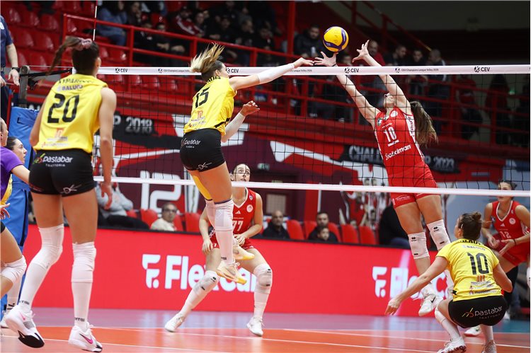ΟΛΥΜΠΙΑΚΟΣ Σ.Φ.Π. (Μπράνκο Κοβάσεβιτς): Βάνιακ 4 (4/6 επ., 33% υπ. - 8% άριστες), Εμμανουηλίδου 7 (2/7 επ., 2 άσσοι, 3 μπλοκ), Κούμπουρα 23 (19/59 επ., 4 μπλοκ), Στεβάνοβιτς 10 (8/16 επ., 2 μπλοκ), Κόνεο 22 (19/38 επ., 3 μπλοκ, 54% υπ. - 35% άριστες), Ντι Ιούλιο 1 (1 μπλοκ) / Αρτακιανού (λ, 73% υπ. - 55% άριστες), Σαμπάτη (λ), Φακοπουλίδου 6 (5/17 επ., 1 άσσος, 38% υπ. - 29% άριστες).