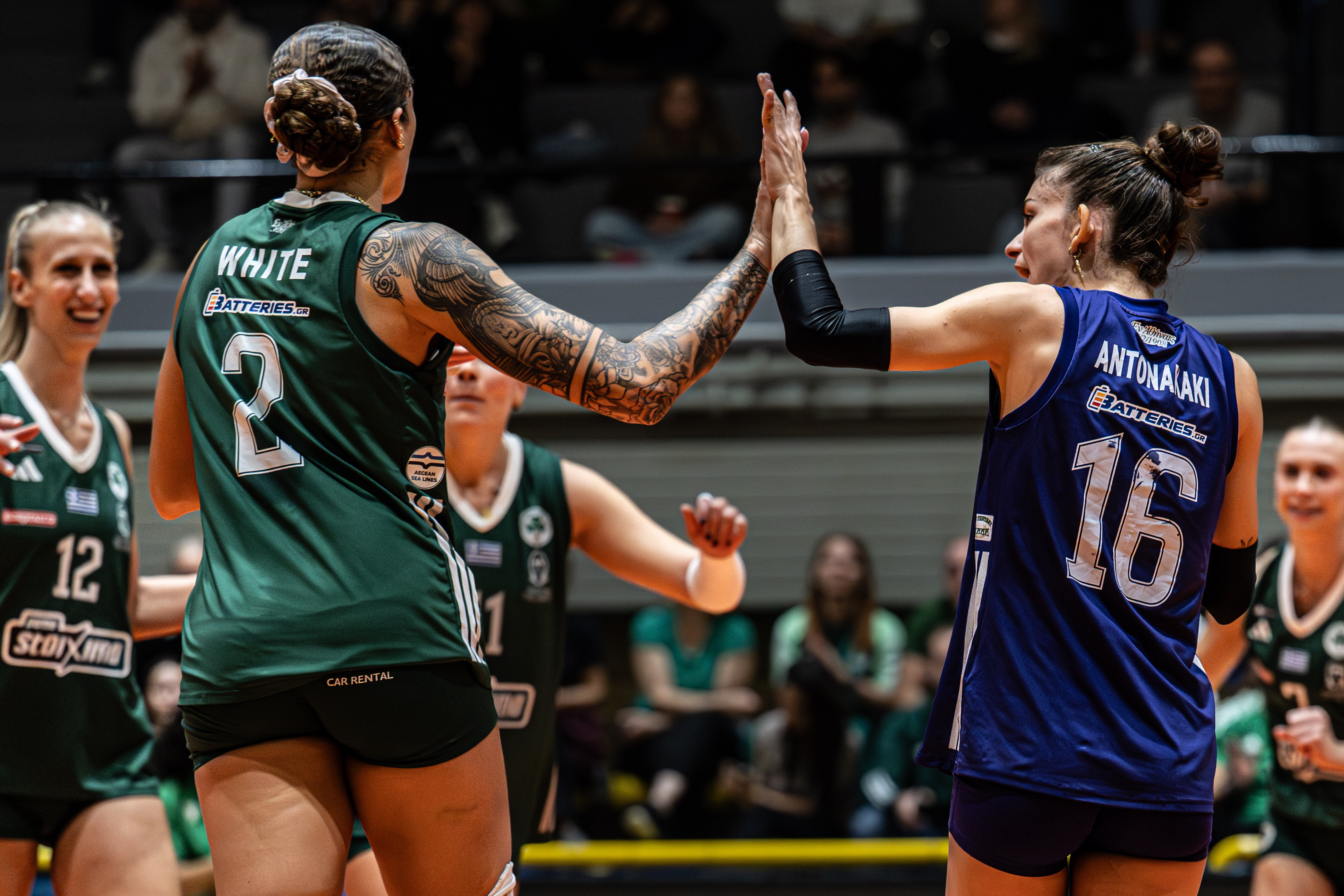 Οι πράσινες έμειναν αήττητες για έβδομο συνεχόμενο αγώνα και παρέμειναν στο -1 από τον πρωτοπόρο Ολυμπιακό, τον οποίο υποδέχονται την επόμενη εβδομάδα στο ντέρμπι κορυφής της Volley League Γυναικών. Ενδιάμεσα, όμως, το τριφύλλι θέλει να σφραγίσει τη πρόκριση στις 16 καλύτερες ομάδες του Τσάλεντζ καπ απέναντι στην ελβετική Ντούντινγκεν. Ο ΑΟ Θήρας αν και ισοφάρισε σε 1-1 δεν άντεξε την πίεση του Παναθηναϊκού και πλέον στρέφει το ενδιαφέρον του στο εκτός έδρας παιχνίδι με τον ΠΑΟΚ.